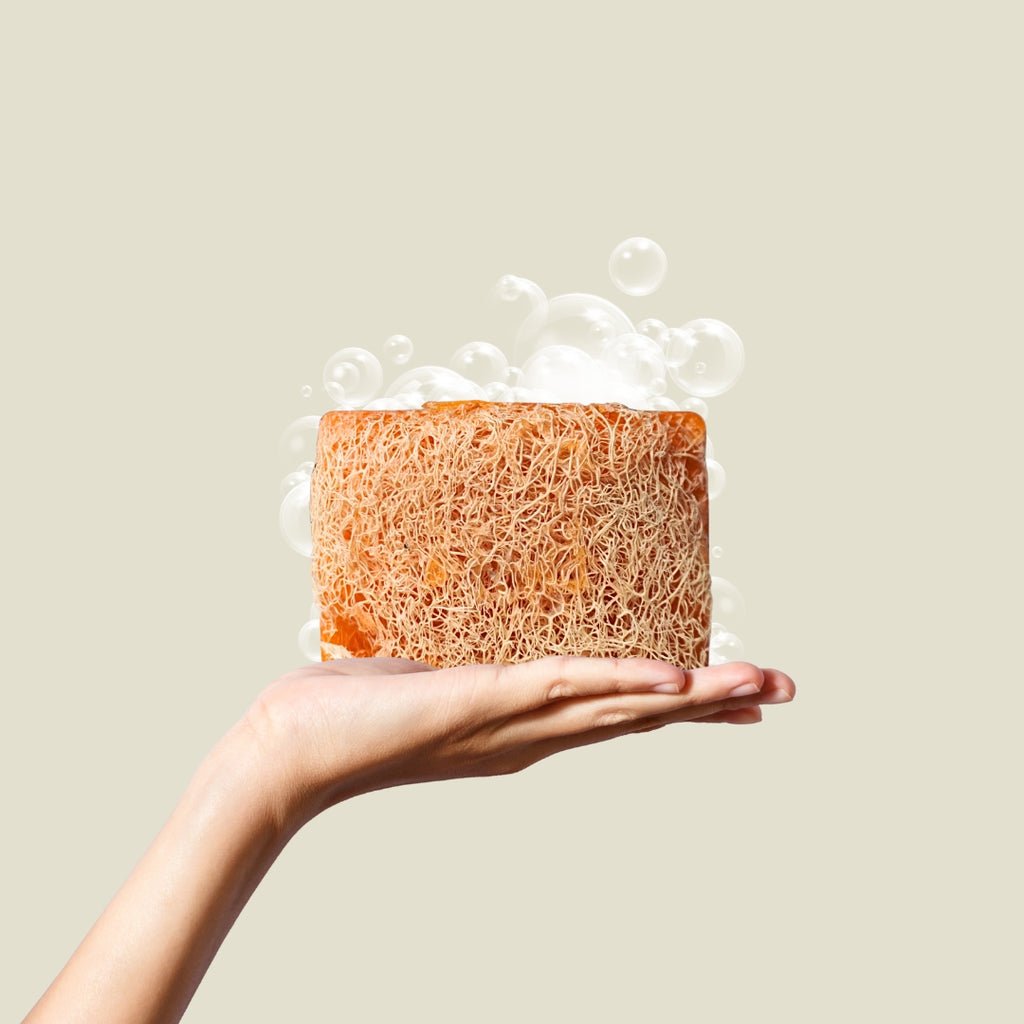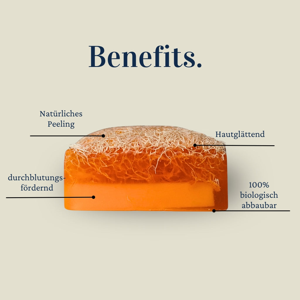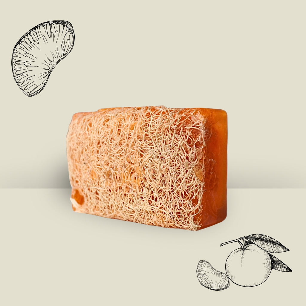 Der fruchtige Mandarinen-Duft belebt sofort, während der Loofah-Schwamm deine Haut sanft exfoliert und für neue Strahlkraft sorgt.